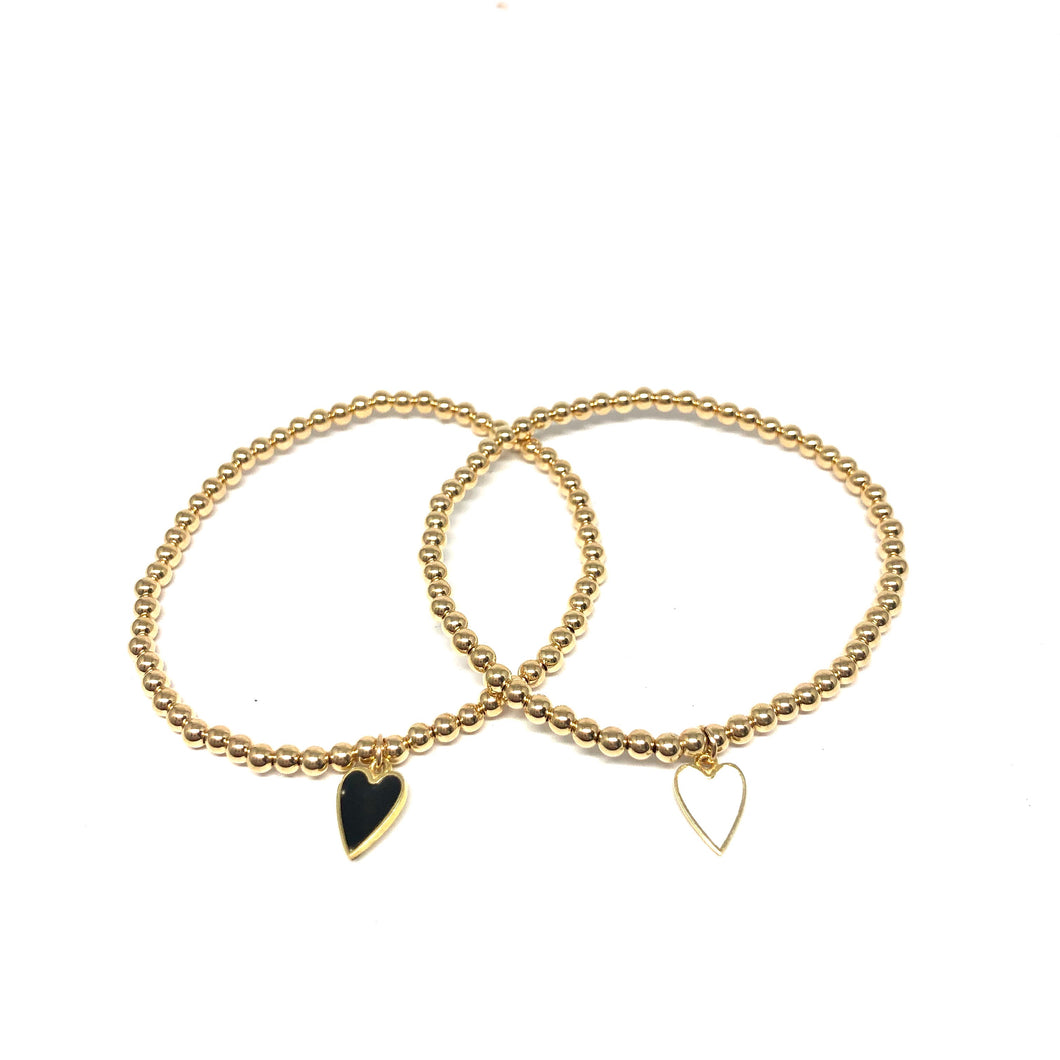 We adore hearts,these gold filled stretch bracelet,with black or white enamel heart pendant looks classic but fun,it looks elegent on its own or stacked with other stretch bracelets.